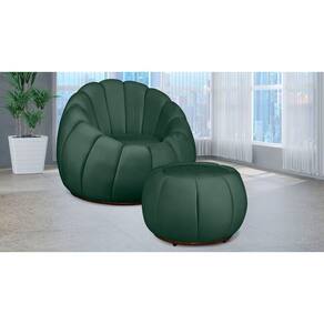 Kit Poltrona Concha Base Giratória Mais Puff Veludo - Estopar - Verde