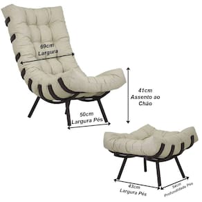 Altura do Assento: 41 cm Espessura do Assento: 15 cm Largura do Assento: 69cm Profundidade do Assento: 55 cm Altura do Encosto: 63cm Peso do Produto: 16 kg O produto suporta até 190 Kg
