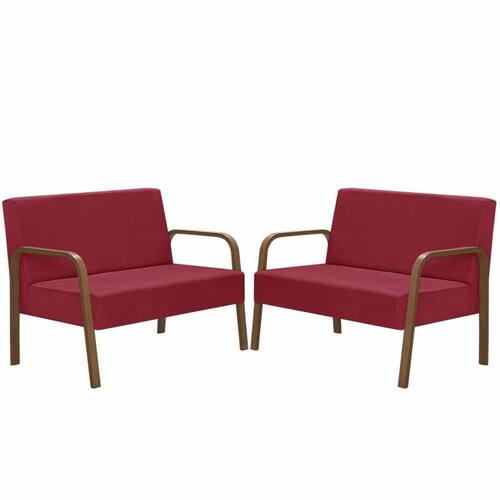 Kit Poltrona Decorativa 2 Namoradeiras Jade Braço Madeira D Salla Suede - Vermelho