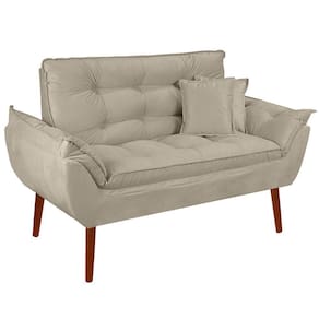 Kit Poltrona Decorativa Namoradeira 2 Puffs Opala e 2 Almofadas Suede Bege - LM Decor