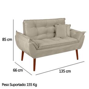 Kit Poltrona Decorativa Namoradeira 2 Puffs Opala e 2 Almofadas Suede Bege - LM Decor
