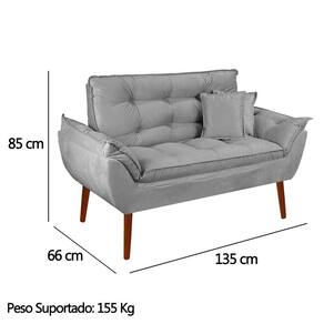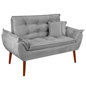 Kit Poltrona Decorativa Namoradeira 2 Puffs Opala e 2 Almofadas Suede Cinza Claro - LM Decor