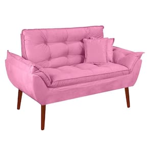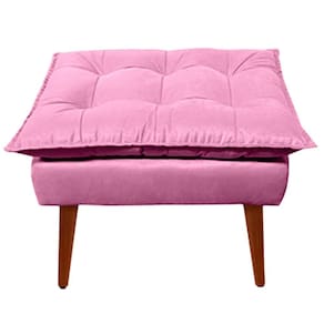 Kit Poltrona Decorativa Namoradeira 2 Puffs Opala e 2 Almofadas Suede Rose - LM Decor