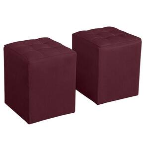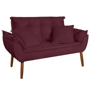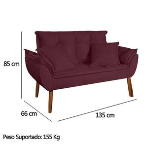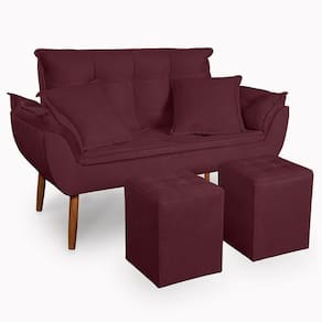 Kit Poltrona Decorativa Namoradeira 2 Puffs Quadrado e 2 Almofadas Suede Bordô - LM Decor