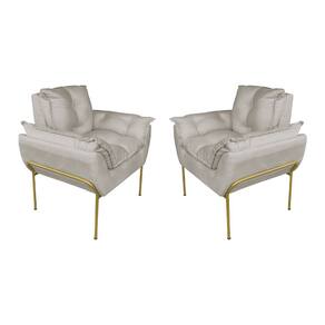 Kit Poltrona Decorativa para Consultório Base Dourada Suede - Vallisa Decor - Bege