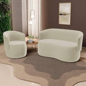 Transforme seu espaço com a sofisticação do Conjunto de Poltrona e Namoradeira Orgânica Aisha! Seu design com acabamento arredondado e curvas cria uma decoração orgânica única. Fabricadas com estrutura de madeira de eucalipto e revestimento Suede, oferece conforto e durabilidade excepcionais, graças à espuma D-23. Versátil, este kit se adapta perfeitamente em vários ambientes: casa, recepção, sala de estar, quarto e eventos. Renove seu ambiente com elegância e qualidade.
