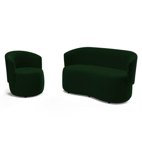 Kit Poltrona E Namoradeira Aisha Orgânica Veludo Verde Escuro - Desk Design