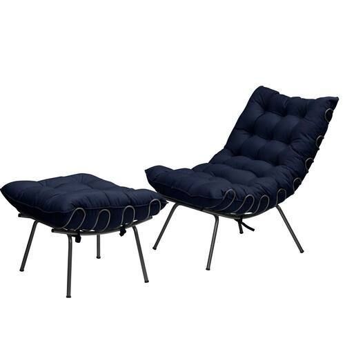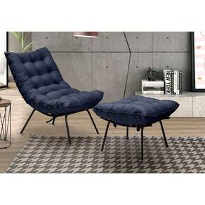 Kit Poltrona e Puff Decorativo Costela Veludo Azul Marinho - Montanaris Decor
