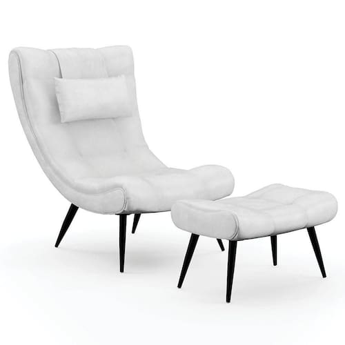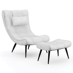 Que tal inovar sua casa com um conjunto de móveis elegante e confortável? Conheça o Kit Poltrona e Puff Para Sala de Estar com Almofada e Pés Palito Lord Sintético Branco, da Ibiza!Esse kit é composto por uma Poltrona e um Puff Lord com detalhes em capitonê, que dão um toque de sofisticação ao ambiente. A poltrona e o puff são produzidos em madeira de eucalipto, espuma D-23 e revestimento em tecido sintético, que garantem durabilidade e conforto. Além disso, o kit acompanha uma almofada ajustável em 3 alturas diferentes e pés palito de ferro que dá um toque retrô, combinando com qualquer estilo de decoração. O Kit Poltrona e Puff é ideal para relaxar, ler um livro ou assistir a um filme na sua Sala de Estar, o puff pode servir como assento extra ou apoio para os pés.Adicione em seu carrinho de compras e garanta o seu agora mesmo! ESPECIFICAÇÕES Dimensões do Produto (L x A x P)Poltrona: 83 x 99 x 105 cm. Puff: 45 x 53 x 42 cm. Peso: Poltrona 35 kg/Puff 20Kg. Características do Produto Material da Estrutura: Madeira Eucalipto . Material da Espuma: D-23. Peso Suportado: Até 120 Kg cada. Revestimento: Sintético. Quantidade de Lugares: 2 Lugares. Possui Pés: Sim. Material dos Pés: Ferro. Diferenciais:- Design moderno. - Detalhe em capitonê. - Pés de ferro. - Almofada para encosto. Sistema de Montagem: O produto é enviado montado, sendo necessário apenas fixar a base. Volumes: 2 Volumes. Conteúdo da Embalagem: 1 Poltrona ,1 Puff. Garantia do Fabricante: 90 dias contra de fabricação. Montagem: Recomendamos que seja feita por um . Recomendação de Limpeza: Utilize pano levemente úmido. Observações importantes - Produto para uso residencial em ambiente interno, não devendo ficar exposto diretamente ao sol, calor e umidades excessivas. - Pode haver alguma diferença de tonalidade entre a imagem e o produto real, por conta do tratamento de imagens e a calibração de cores do seu monitor. - As imagens são meramente ilustrativas, não acompanham objetos de decoração e eletrônicos. - Ao receber a mercadoria, o cliente deve verificar as condições da embalagem, caso haja alguma não assine o de . - Montagem, desmontagem e outras instalações serão de responsabilidade do cliente. Não nos responsabilizamos, no ato da , por subir escadas/elevadores ou pelo por guincho em apartamentos. Eventuais despesas são de responsabilidade do comprador. - Confira as dimensões do produto e certifique-se de que passará normalmente por supostos elevadores, portas, escadas e/ou corredores de sua residência.