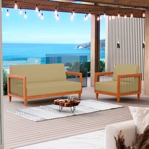 Que tal o Conjunto de Poltrona e Sofá Varanda Samoa Madeira Maciça com Cordas Náutica?