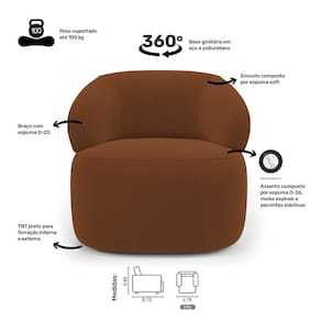 Kit Poltrona Giratória e Sofá Orgânico Living Glee 03 Lugares 170cm Veludo Terracota - Desk Design - Laranja