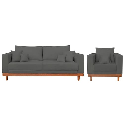 Você receberá 2 volumes, ou seja, um Kit Poltrona Living + Sofá 2 Lugares com Base Madeira Suede