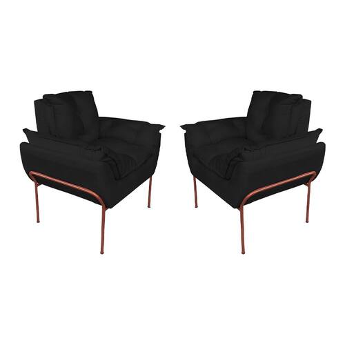 Kit Poltrona Moderna Base Cobre Suede Preto - Vallisa Decor