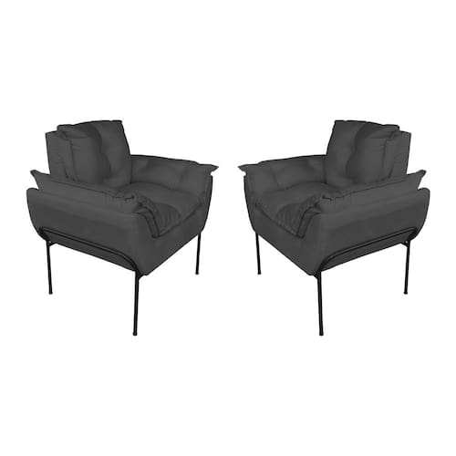 Kit Poltrona Moderna Base Preta Suede Cinza - Vallisa Decor