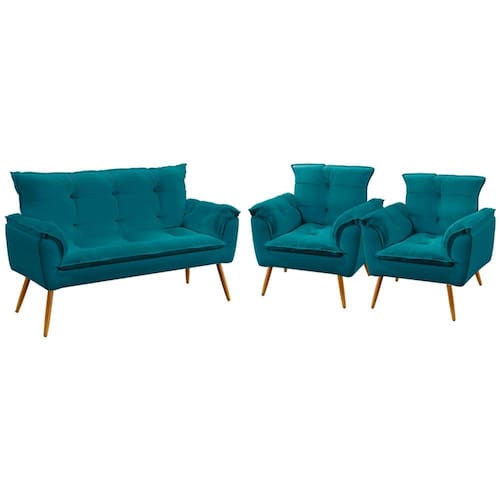 Características do Produto: Madeira de eucalipto proveniente de reflorestamento Fixação com grampos galvanizados Espuma Poliuretano D20 Enchimento com fibra siliconada e flocos Produto costurado Poltrona almofadada Revestimento: Sued Cor: Azul Turquesa Tamanho: Único Possui pés: Sim Tipos de pés: Pés palitos Possui 12 pés palitos de 25 cm Poltrona suporta até 90 kg Poltrona namoradeira suporta até 180 kg Embalagem: plástico bolha, papelão ondulado, plástico Garantia de 3 meses contra defeitos de fábrica.