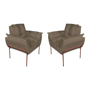 Kit Poltrona Recepção Suede Cappucino Base Cobre - Vallisa Decor - Preto