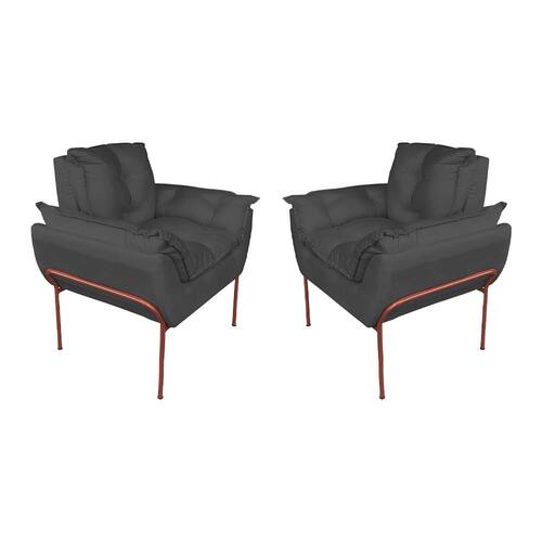 Kit Poltrona Recepção Suede Cinza Base Cobre - Vallisa Decor