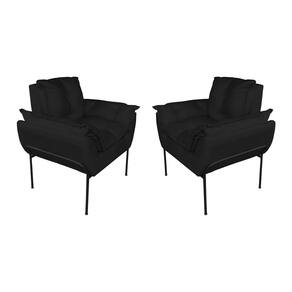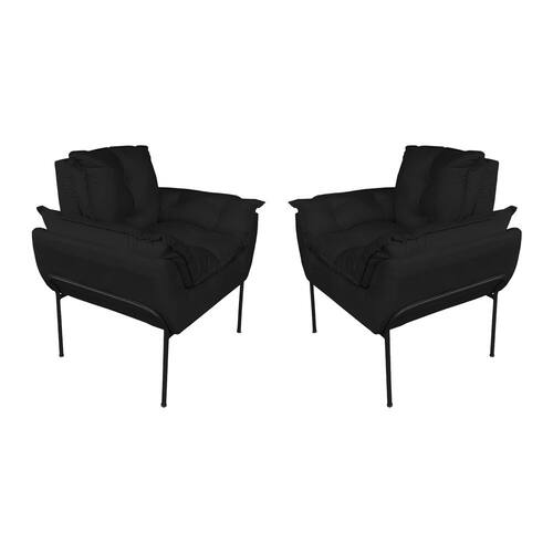 Kit Poltrona Recepção Suede Preto Base Preta - Vallisa Decor