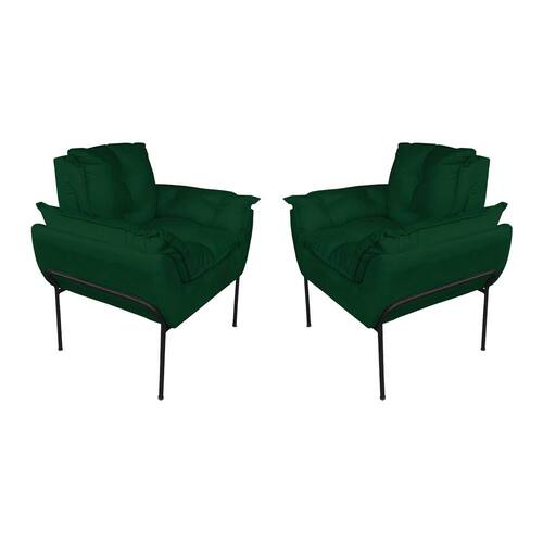 Kit Poltrona Recepção Suede Verde Base Preta - Vallisa Decor