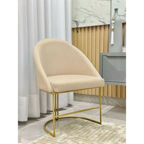 Kit Poltronas Decorativa Lua Sala de Jantar Base Industrial Dourada Bege Claro