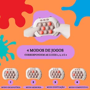 - Jogos divertidos de treinamento cerebral;- Melhore o reflexo: Estoure todas as bolhas acesas assim que elas aparecerem e, em seguida, pressione o botão na parte inferior do game para reiniciar e subir as bolhas!- O mais divertido e emocionante jogo POP - IT, ideal para memória, reflexo, concentração e cérebro. - Capivara: flexibilidade extrema: Estique e aperte sem medo, o brinquedo volta ao seu formato autêntico após o uso. - Pop-it: Tamanho: 12cm de altura x 13cm de largura x 5,5cm de comprimento - Capivara: 13cm de altura x 9cm de altura x 8,5cm de profundidade