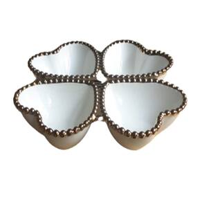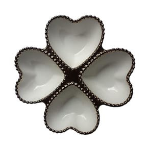 O Kit Porta Bijuterias Joia Tigela De Cerâmica Trevo Coração é perfeito para organizar suas jóias e pequenos objetos do dia a dia. Composto por uma Tigela de Cerâmica em formato de Trevo com 4 corações juntos, esse porta bijuterias possui um design encantador e funcional.