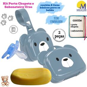 Kit Baby Urso 2 peças, composto por 1 Porta Chupeta com alça e fechamento de pressão e 1 Saboneteira com fechamento de pressão. Os itens do conjunto são fabricados pela Plasútil e produzidos em polipropileno de alta resistência e durabilidade, além de material atóxico livre de bisfenol (BPA Free) em sua composição. Os produtos formam um kit com decoração coordenada pra lá de exclusiva.