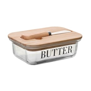 Kit Porta Frios + Manteigueira + Meleira + Açucareiro de Vidro e Bambu Wolff - Itens Inclusos