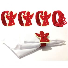 04 Unidades Anel Porta Guardanapo Tecido Feltro Anjo Vermelho com Árvore Pinheiro Vermelho - Magizi