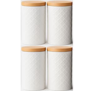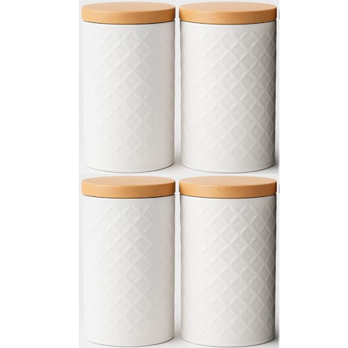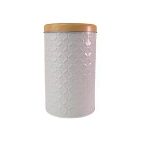 Características: Cor: Branco ou Preto Material do corpo: Metal Material da tampa: Metal com acabamento que imita bambu, garantindo melhor vedação. Dimensões: 19,5 cm (A) x 10 cm (L) x 10 cm (C) Capacidade: 1 kg