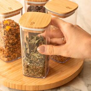 01 Organizador Giratório Keep Bambu + 04 Potes Herméticos Keep 340ml