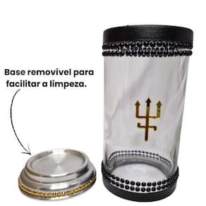 Fabricado em vidro de alta qualidade, resistente e durável, ideal para resistir ao uso contínuo nas suas práticas espirituais. Com um design único apresenta detalhes que evocam a força e a sabedoria de Exu, incluindo símbolos e cores que refletem sua essência e energia.