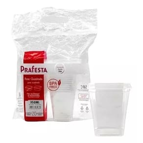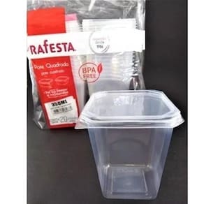 Kit Pote 350 ml com Tampa e Lacre Ideal para o armazenamento de alimentos, para Freezer e Micro-ondas, altamente resistentes e fecham hermeticamente. Especificações Marca: Prafesta Composição: Polipropileno (Plástico PP) Conteúdo: 20 unidades Capacidade: 350ml Tamanho: 7,5cm x 7,5cm x 9 cm