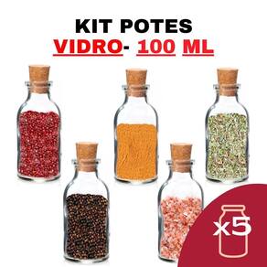 Kit potes de tempero de vidro 100ml com tampa rolha Quantidade: 5 Atenção certifique-se de selecionar a quantidade de potes desejada no kit ao finalizar a compra.