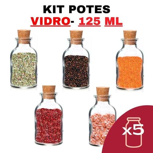 Kit potes de temperos condimentos de vidro 125ml Quantidade: 5 Atenção certifique-se de selecionar a quantidade de potes desejada no kit ao finalizar a compra.