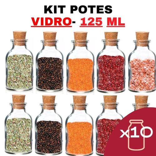 Kit potes de temperos condimentos de vidro 125ml Quantidade: 10 Atenção certifique-se de selecionar a quantidade de potes desejada no kit ao finalizar a compra.