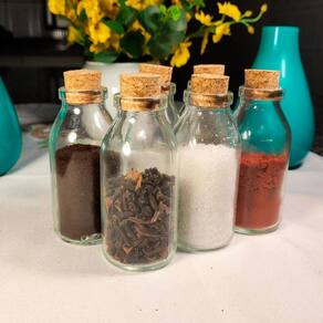 Contém: - kit potinhos para tempero monte seu kit - tampas de rolha em cortiça.