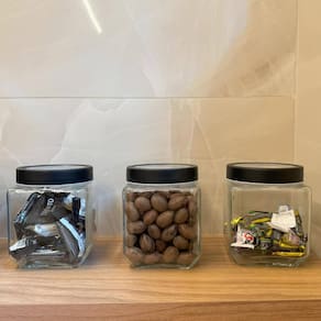 Dimensões tampa de cada pote: 11cm (D) x 2cm (A);