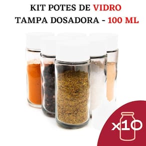 Kit potes de temperos e condimentos de vidro com tampa dosadora - potes de vidro 100ml tampa branca - frascos - jogo Quantidade: 10 Atenção, por favor, leia a descrição Desorganização e sujeira na sua cozinha Aqui não Chegou a hora de redecorar sua cozinha com essas lindas peças os potes são feitos de vidro, não acumulam cheiro nem substâncias com o tempo, também não amarelam. São práticos para limpeza e possuem um design que se adeque a qualquer ambiente. Sua cozinha mais você Chega de comprar aqueles saquinhos de tempero seco e jogar tudo fora depois de alguns meses por não saber se ainda estão bons para uso o tempero seco, bem conservado, dura muito mais tempo. Você precisa mesmo é de um porta temperos de vidro, são duradouros, super fáceis de lavar e servem para os mais diversos temperos mesmo de já utilizados o porta tempero é um item fantástico para organizar temperos e condimentos na bancada, pia, aparador, mesa, entre outros. Acompanha um kit com 10 porta temperos de vidro com tampa dosadora dupla de plástico. A principal vantagem é a tampa dosadora plástica, que não enferruja ela possui duas aberturas diferentes, parcial com furos e total com vão livre. É do tipo flip, aquela que abre e fecha sem precisar rosquear. Serve para os mais variados tipos de receita Potes de vidro reforçado com 100ml com 10cm de altura e 4cm de largura com tampa plástica dosadora dupla. Ao contrário de outros materiais o plástico e o vidro não oxidam, não amassam e não criam fungos. Tanto a tampa como o vidro podem ser lavados sem preocupações. Ótima opção para quem deseja decorar o ambiente com muito bom gosto e deixar sua casa ainda mais bonita. Renove seu ambiente e deixe o seu espaço mais acolhedor, moderno e, principalmente, com a sua cara. Características- design único e aconchegante.- ideal para completar a decoração da sua casa.- produzido e tratado com materiais de qualidade. Informações adicionaistamanho dos potes: 10cm de altura x 4cm de diámetro.capacidade: 100ml. Itens inclusos:- 10 potes em vidro com tampa em plástico.- temperos não inclusos Limpeza do produtoHigienização convencional, recomenda-se não deixar em contato com água por longos períodos. Dúvidas Marca: Senhora Madeira