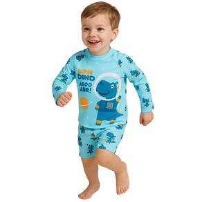 Possui estampa divertida de dinossauro no estilo Rock'n Roll, ideal para proteger a pele das crianças durante dias ensolarados na praia ou piscina.