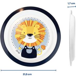 Possui um design seguro com pontas arredondadas. ventosa na base que proporciona maior apoio e impede que a criança derrube o prato.