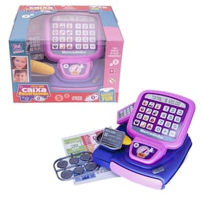 - 1 caixa registradora de 19 cm x 19 cm x 15cm - 1 maquininha de caratão de 8,5 x 6 cm - 1 notinha de compra de 4,5 cm x cm - 1 cartão de credito de 5,5 cm x 3,5 cm - 1 balança com alimento de 9 cm x 7 cm - 6 moedas de 2 cm - 5 notas de dinheiro -------------------------------------------------------------------------------------- - 1 batedeira de aproximadamente 15 cm de altura x 12 cm de largura -------------------------------------------------------------------------------------- - 1 cafeteira de aproximadamente 19cm de altura x 12 cm de largura com 1 cápsula de brinquedo -------------------------------------------------------------------------------------- - 1 escorredor de louças - 2 pratos - 2 copos - 4 talheres. -------------------------------------------------------------------------------------- - tamanho das formas: 8 cm de comprimento x 7 cm de altura com 1 acessório