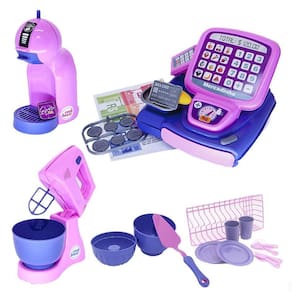 Kit prato expresso cafeteira bolo brinquedo menina 28pç O kit vem com caixa registradora com dinheiro falso, batedeira, cafeteira com cápsula, louça com escorredor - 1 caixa registradora de 19 cm x 19 cm x 15cm - 1 maquininha de caratão de 8,5 x 6 cm - 1 notinha de compra de 4,5 cm x cm - 1 cartão de credito de 5,5 cm x 3,5 cm - 1 balança com alimento de 9 cm x 7 cm - 6 moedas de 2 cm - 5 notas de dinheiro -------------------------------------------------------------------------------------- - 1 batedeira de aproximadamente 15 cm de altura x 12 cm de largura -------------------------------------------------------------------------------------- - 1 cafeteira de aproximadamente 19cm de altura x 12 cm de largura com 1 cápsula de brinquedo -------------------------------------------------------------------------------------- - 1 escorredor de louças - 2 pratos - 2 copos - 4 talheres. -------------------------------------------------------------------------------------- - tamanho das formas: 8 cm de comprimento x 7 cm de altura com 1 acessório -------------------------------------------------------------------------------------- Informações adicionais: Não recomendável para menores de 03 anos por conter partes pequenas que podem ser engolidas. Imagens fotografadas pela equipe click compras para uso exclusivo da mesma. O uso não-autorizado das imagens expostas estará sujeito a sanções previstas em lei de direitos autorais. Certificado pelos órgãos autorizados - ocps organismos de certificação de produtos Mais informações as cores, ítens e embalagem poderão variar conforme atualização do fabricante. Imagens meramente ilustrativas. Não recomendado para crianças menores de 3 anos por conter partes pequenas que podem ser engolidas ou aspiradas. Produto certificado pelo inmetro: ce-bri/innac - 00297-01a nm300/2002