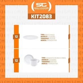 Especificações técnicas: - Material: Porcelana tradicional - Tipo: Prato raso e conjunto de xícara e pires - Coleção: Leonora - Pode ser lavado na lava-louças - Cor: Branco - Volume da xícara: 240ml