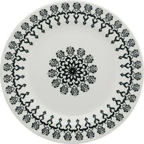 A cor preta é básica e neutra, um verdadeiro curinga na hora de montar a mesa. Nessa louça, colocamos a cor preta numa estampa mais alegre e jovial, perfeita para quem prefere um formato de pratos tradicional com uma decoração mais alegre. A xícara preta, sem decoração, cria uma linda composição com as demais peças.