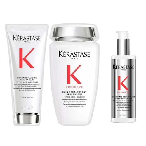 O Tratamento Pré Shampoo Concentré Kérastase Première Décalcifiant Ultra-Réparateur com 250ml, possui textura em gel transparente, é um brilhante tratamento capilar que reduz drasticamente os danos persistentes, repara as ligações rompidas entre as cadeias de queratina para recriar a força e reforçar a estrutura do cabelo.