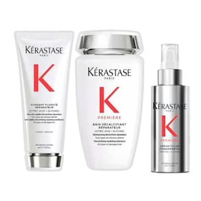O Condicionador Kérastase Fondant Fluidité Réparateur Première, é o 1° primeiro Condicionador reparador descalcificante, ele atua recriando a elasticidade autêntico do cabelo, fortalece a fibra instantaneamente, a umidade e a fluidez são restauradas aos cabelos tratados com químicas excessivas ou descoloridos.