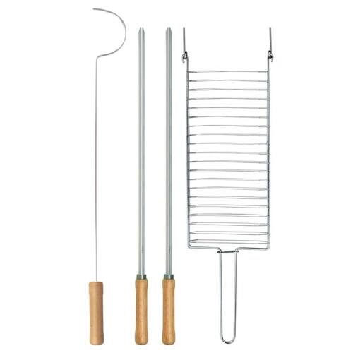 Kit Preparo Churrasco 4Pcs Churrasqueira 65Cm Cabo Madeira