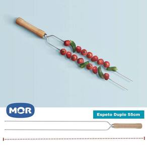 A escolha do espeto ideal para seu churrasco é fundamental. Por isso a Mor desenvolveu uma linha completa de espetos e acessórios para atender todos os tamanhos de churrasqueiras e atender aos mais exigentes churrasqueiros. O Espeto Duplo 55cm da linha churrasco é feito em arame de aço com acabamento em cromo, perfeito para assar uma costela, picanha, sobrecoxa de frango, lombinho de porco ou até aquele delicioso pão com alho. Além disso, o cabo garante a sua segurança, pois minimiza o risco de queimaduras.EspecificaçõesMATERIAL Aço CromadoOBSERVAÇÕES Os objetos que ambientam as imagens não acompanham o produtoGARANTIA 90 Dias