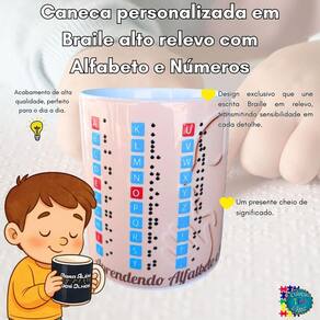 Principais atributos: - Canecas personalizadas com relevo em Braile para experiência tátil real - Porcelana de alta qualidade, 325 ml ideal para uso diário e durabilidade - Estímulo ao aprendizado do alfabeto e números em Braile, promovendo acessibilidade - Design significativo que une funcionalidade e sentimento - Produto ideal para presente inclusivo, educativo e cheio de significado Marca: Não Informado